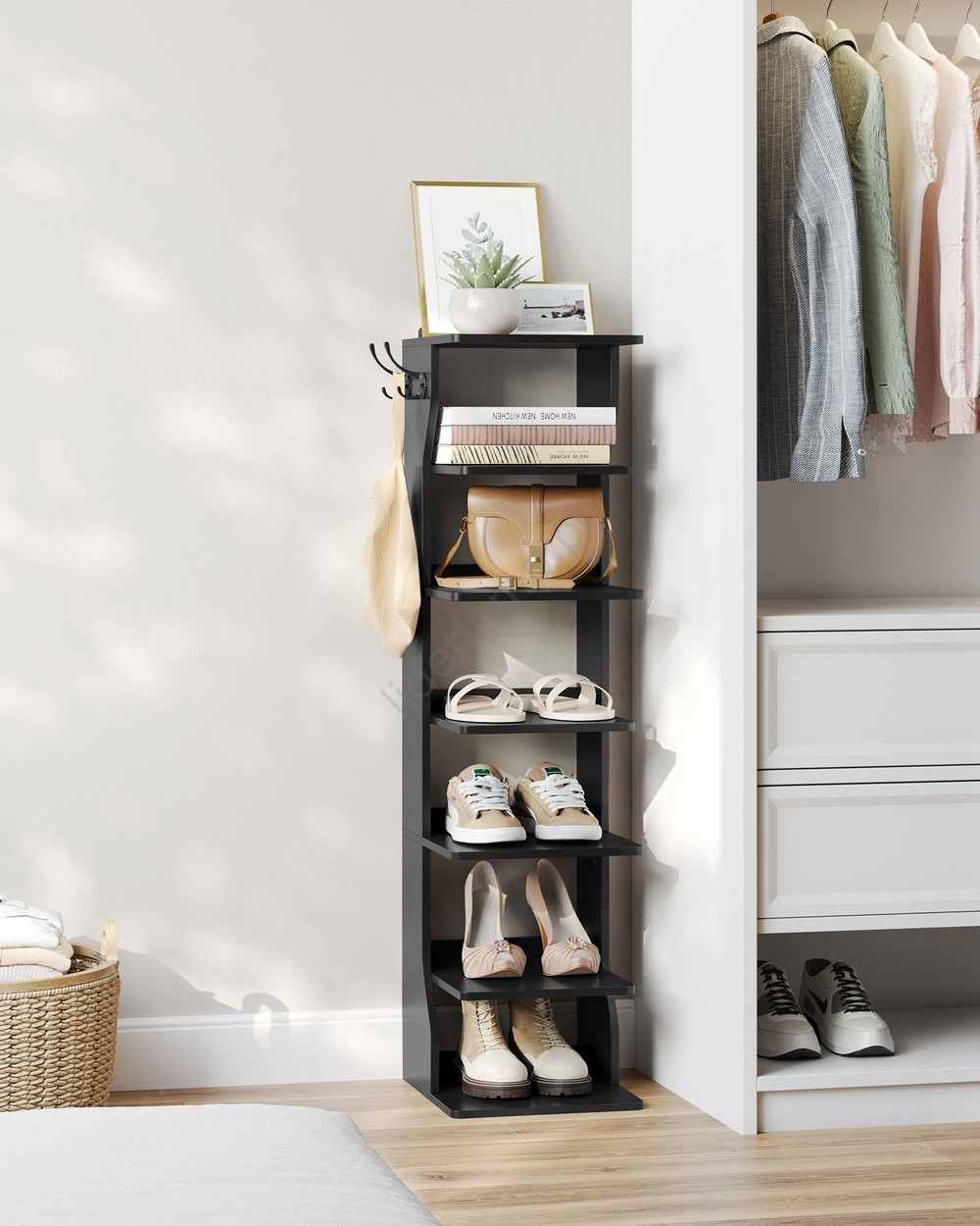 • Dzięki smukłej formie ta 7-poziomowa szafka na buty zajmuje niewiele miejsca na podłodze, a jednocześnie oferuje dużo przestrzeni do przechowywania.