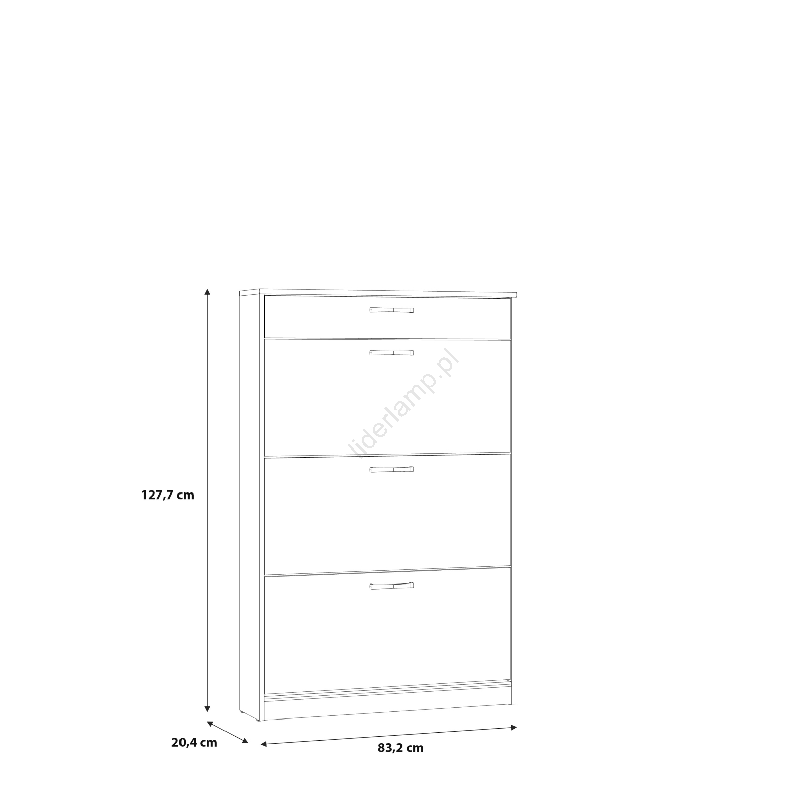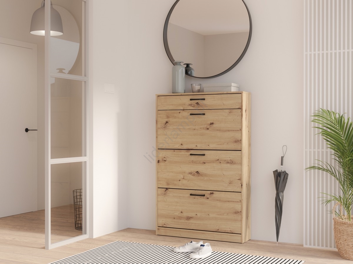 • Dzięki smukłej konstrukcji ta czteropoziomowa szafka na buty zajmuje niewiele miejsca na podłodze, a jednocześnie oferuje dużo miejsca do przechowywania.
