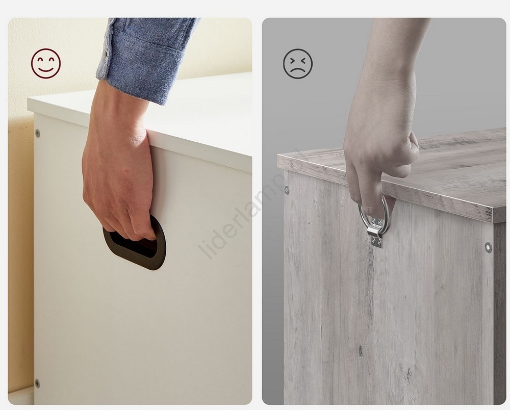 • Dzięki smukłej formie zajmuje niewiele miejsca na podłodze, a jednocześnie oferuje wystarczającą przestrzeń do przechowywania.