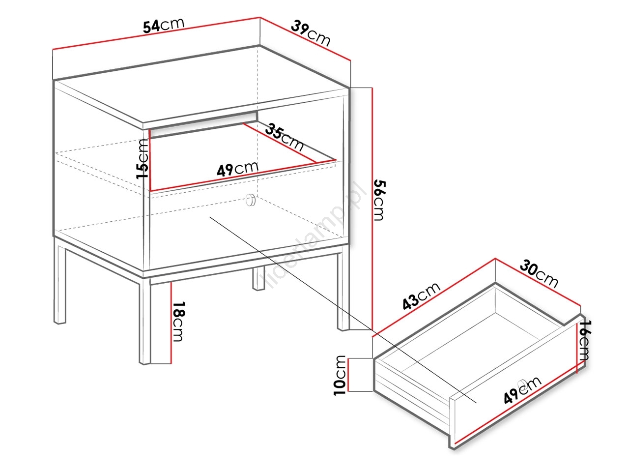 • Wykonany z płyty wiórowej o grubości 16 mm.