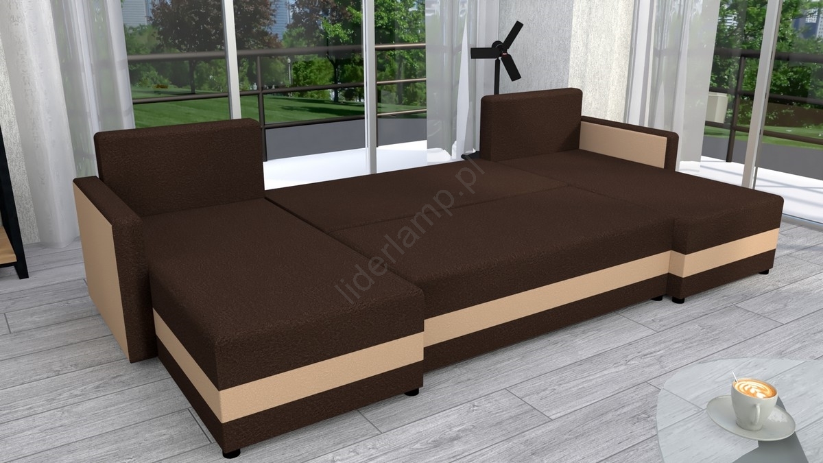 • Tapicerowany uniwersalny rozkładany narożnik w kształcie U BRISTOL brązowo-beżowy