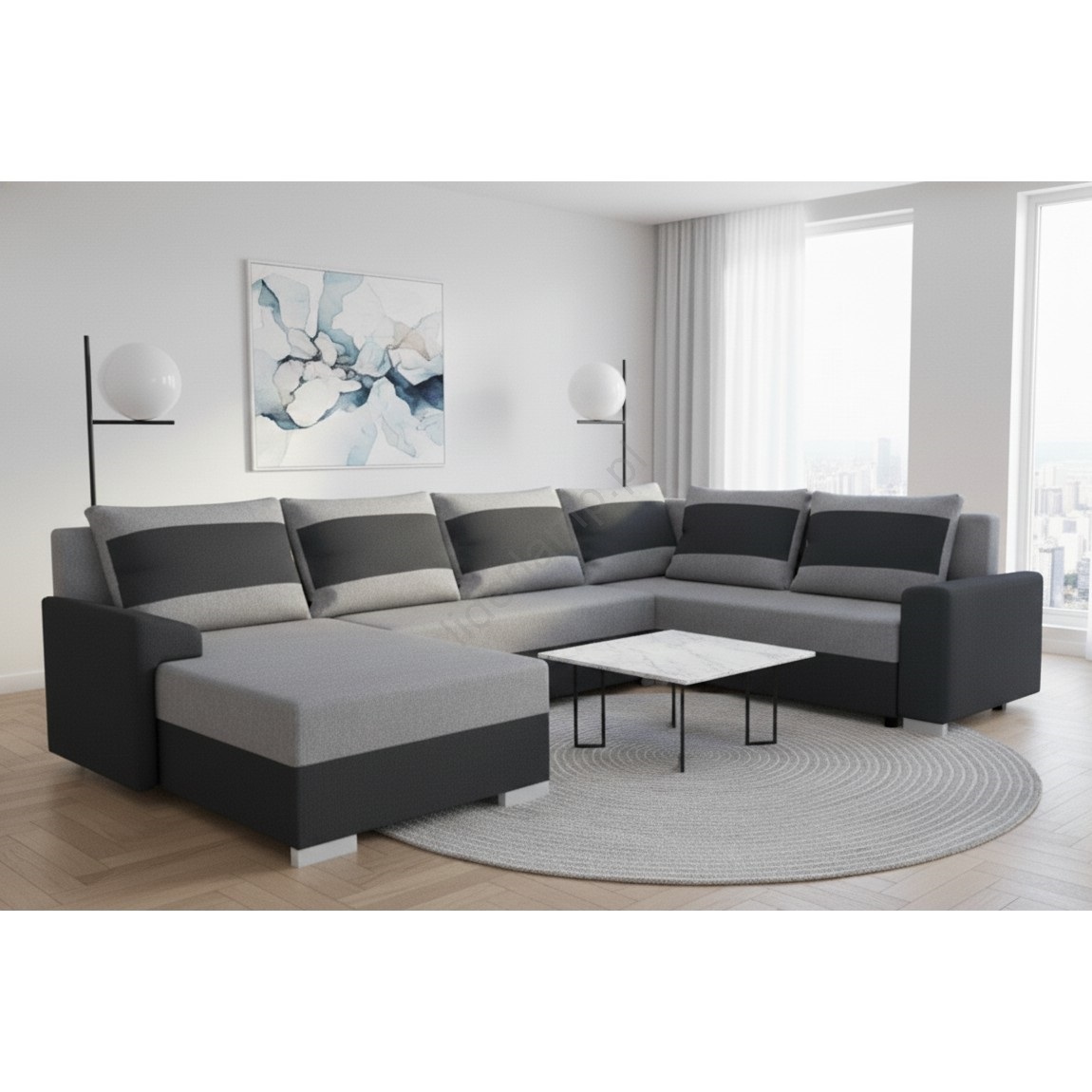 • Tapicerowany, uniwersalny, rozkładany narożnik w kształcie U OXFORD czarny/szary