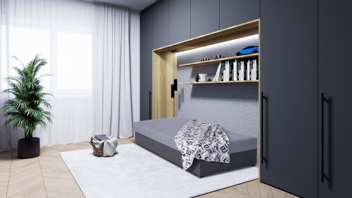 • Łóżko wyposażone jest w duży pojemnik na pościel z bocznym systemem podnoszenia do przechowywania pościeli i innych sezonowych rzeczy.
