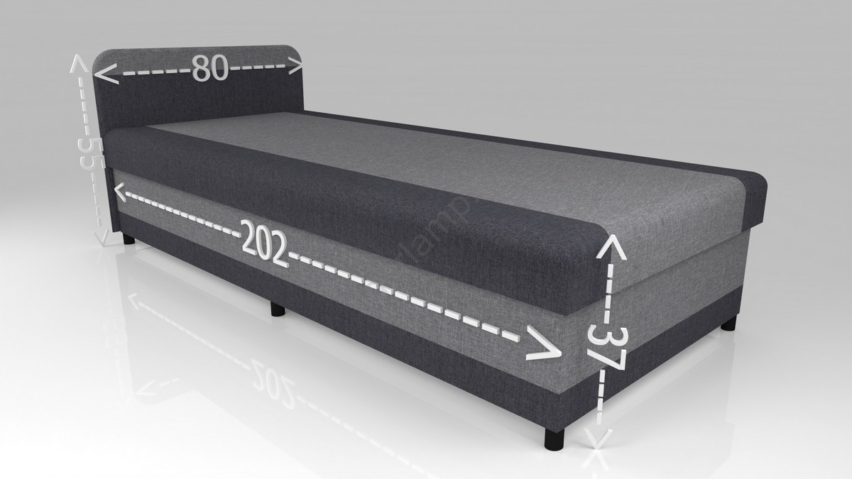 • Tapicerowane łóżko z pojemnikiem TALI 80x202 szary/antracyt