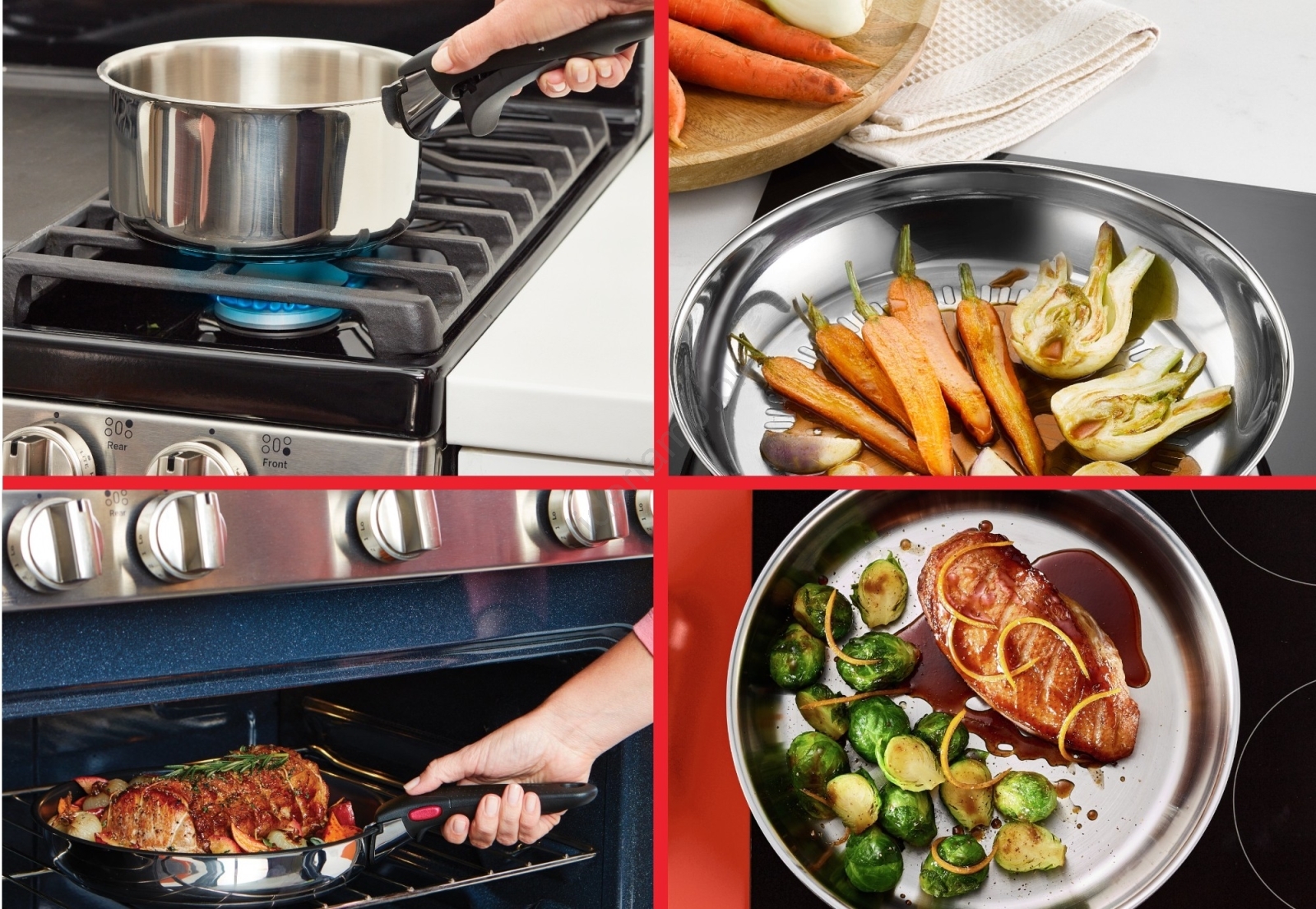 • Zestaw można używać na wszystkich rodzajach płyt grzewczych – gazowych, elektrycznych, ceramicznych lub indukcyjnych.