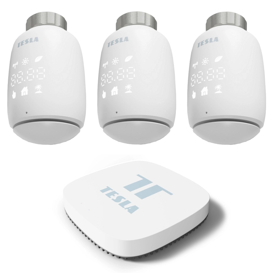 TESLA Smart - ZESTAW 3x inteligentna bezprzewodowa głowica termostatyczna 2xAA + inteligentna brama Hub Zigbee Wi-Fi