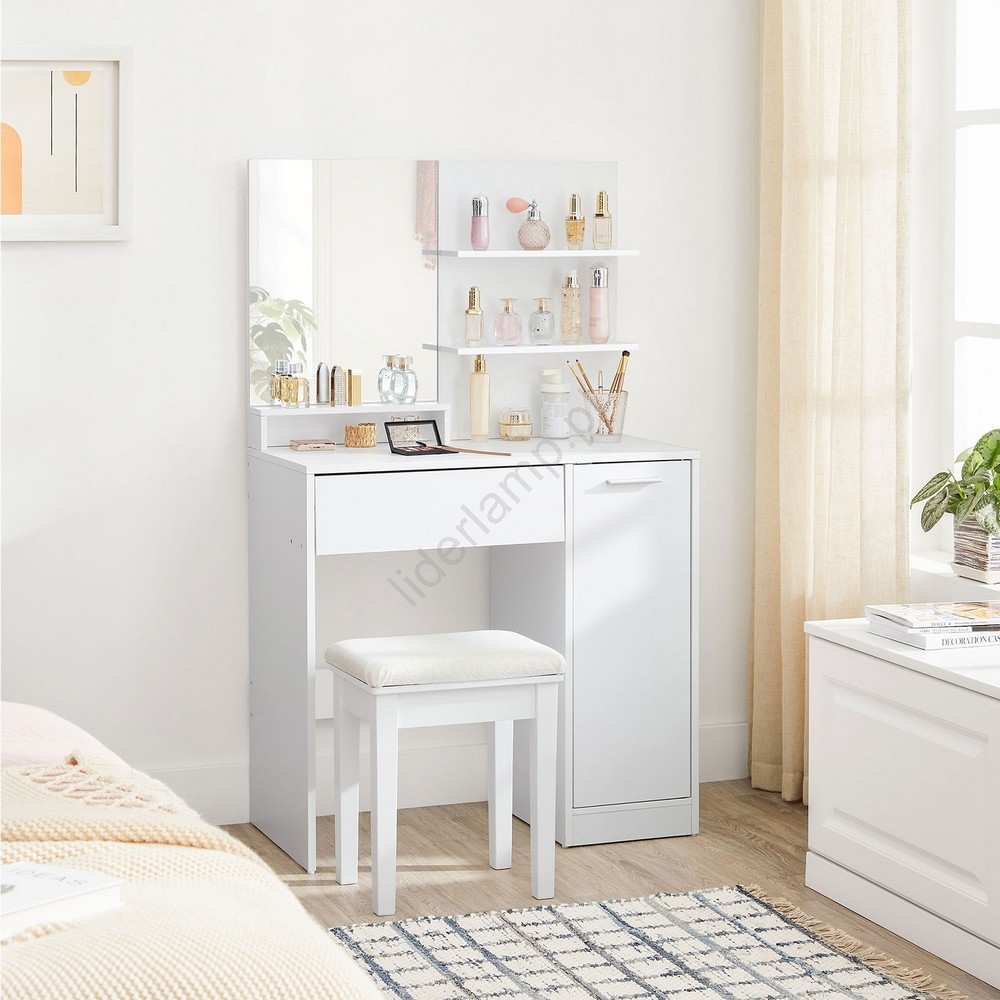 • Szuflada, szafka i półki zapewniają łatwy dostęp do Twoich kosmetyków i makijażu.
