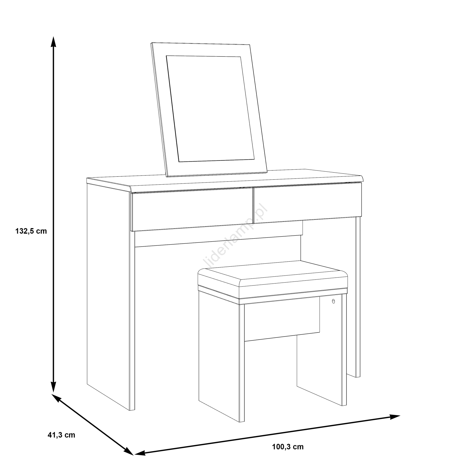 • Posiada dwie szuflady, które zapewnią Ci mnóstwo miejsca na kosmetyki i inne drobiazgi.