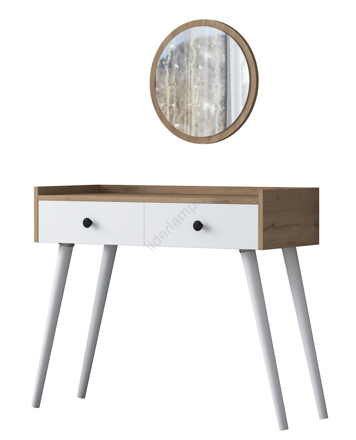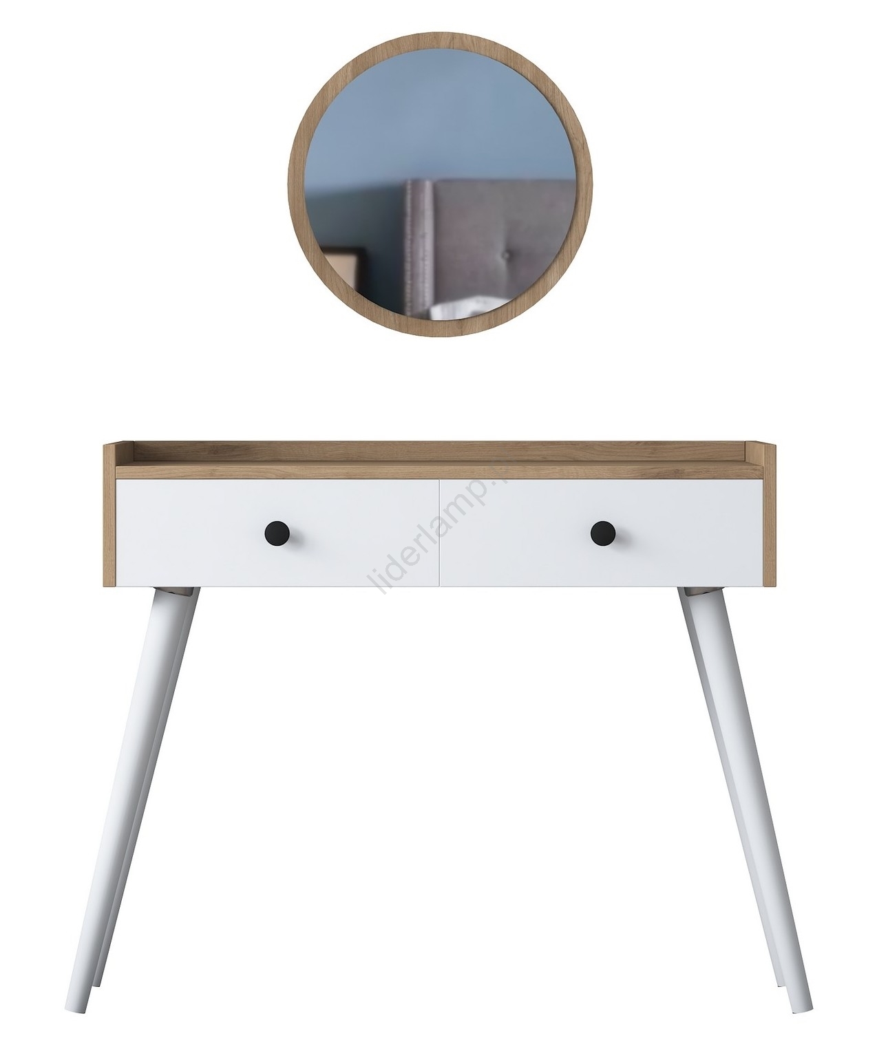 Toaletka RANI 98,6x83,8 cm + lustro ścienne o średnicy 40 cm brązowo-białe
