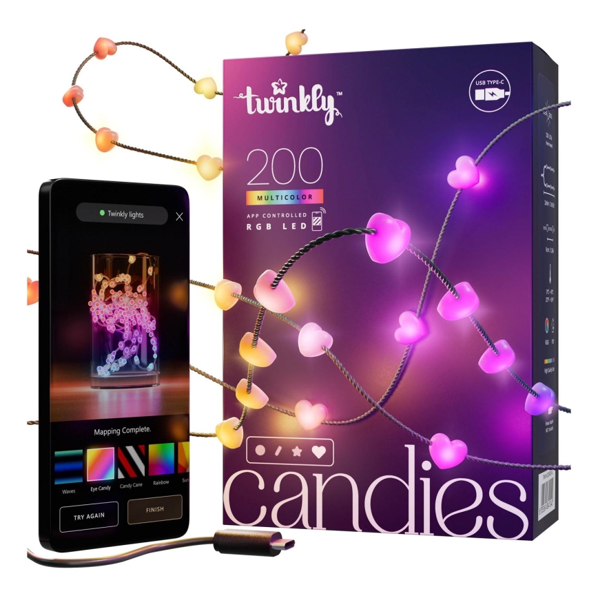 Twinkly - LED RGB ściemnialny łańcuch świetlny CANDIES 200 diod LED 14 m USB Wi‑Fi