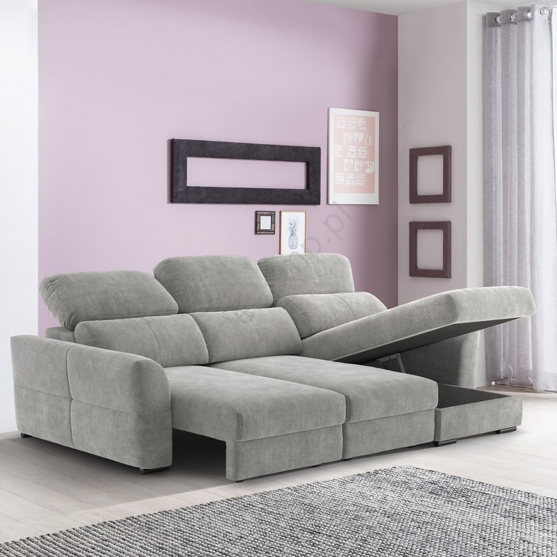 • Uniwersalna narożna rozkładana sofa trzyosobowa z pojemnikiem na pościel TRENTO szara