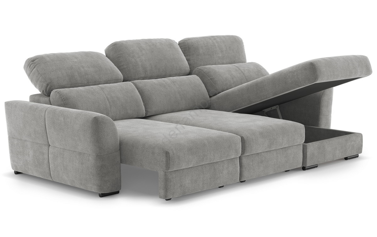 • Uniwersalna narożna rozkładana sofa 3-osobowa z pojemnikiem TRENTO jasnoszara