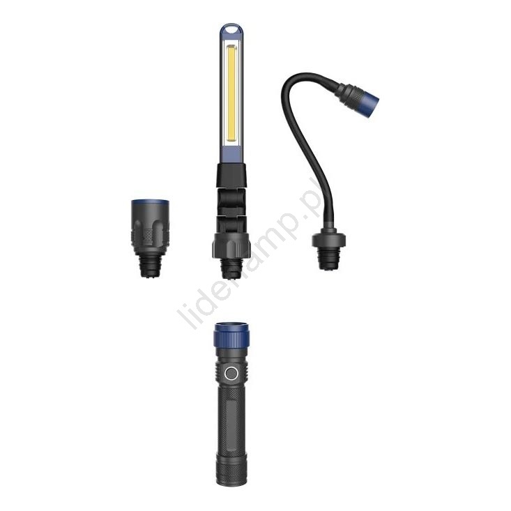 • Latarka i wszystkie akcesoria są przechowywane w praktycznym kufrzyku.