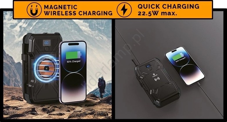 • Wystarczy przyłożyć urządzenie do powerbanka i rozpocząć ładowanie.