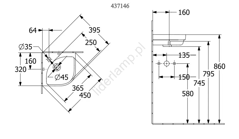 ReviewsWidget_ReviewsAboutUs Villeroy & Boch 43714601 - Narożna umywalka wisząca SUBWAY 32x32 cm, ceramika/biała | Liderlamp.pl
