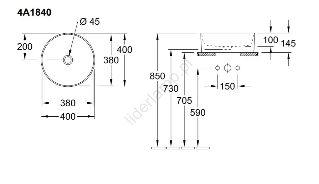 • Nowoczesna i elegancka umywalka bez przelewu.