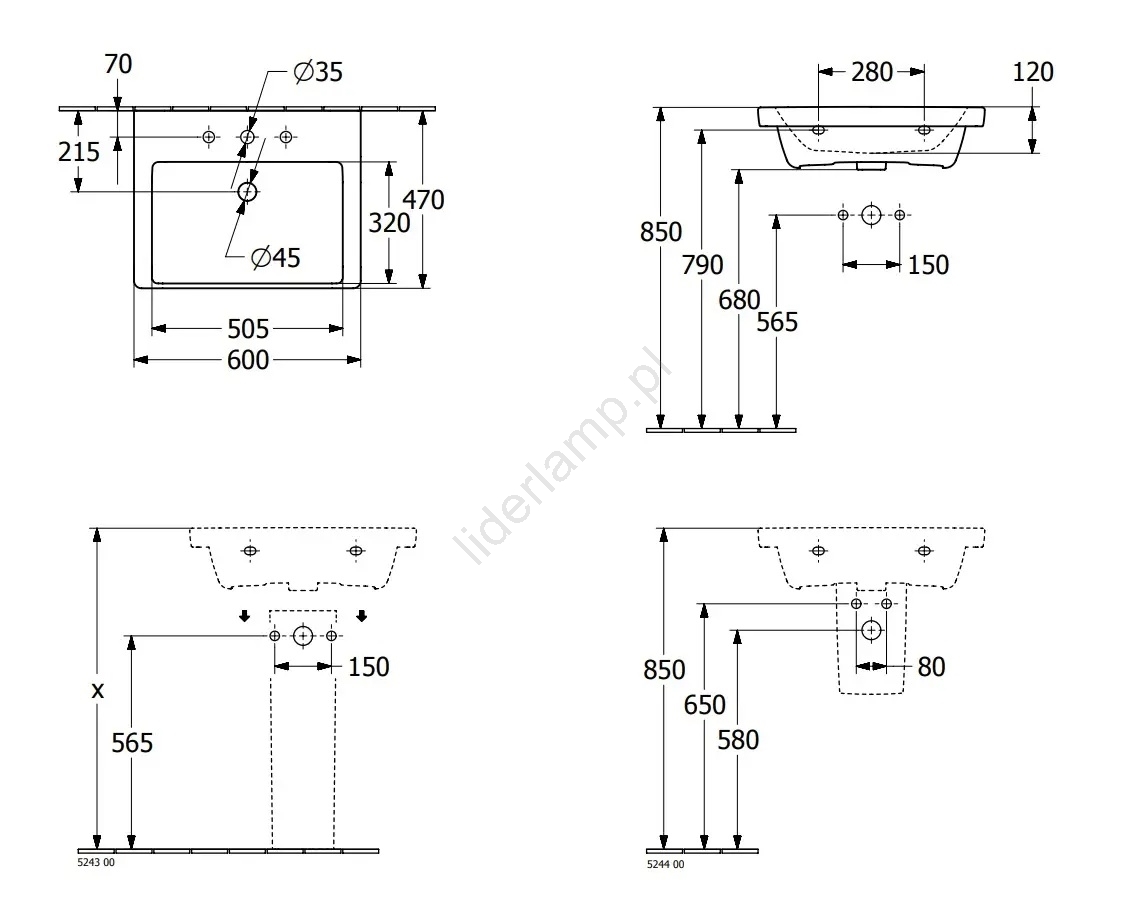 • Bateria umywalkowa i korek odpływowy nie są dołączone do zestawu.
