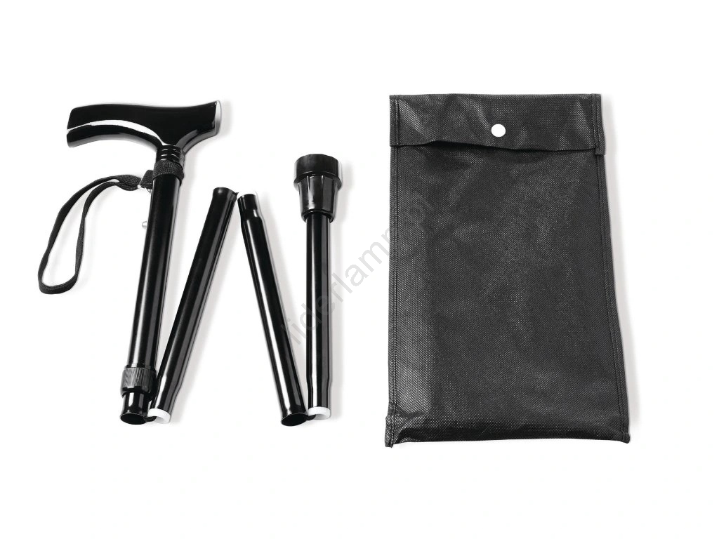• Składana laska vybaviona ergonomiczną, drewnianą rączką, zapewniającą pewny i komfortowy chwyt.