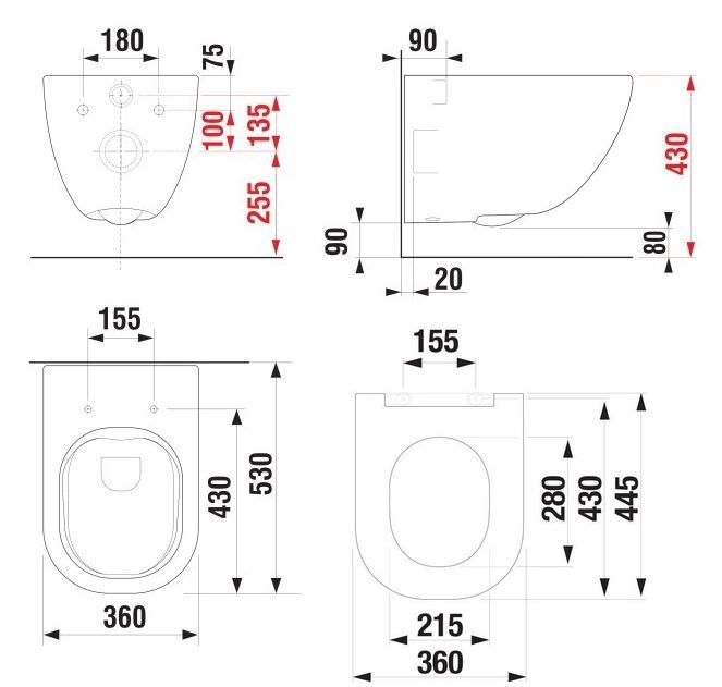 • Toaleta wisząca z głębokim spłukiwaniem, bezkołnierzowa.