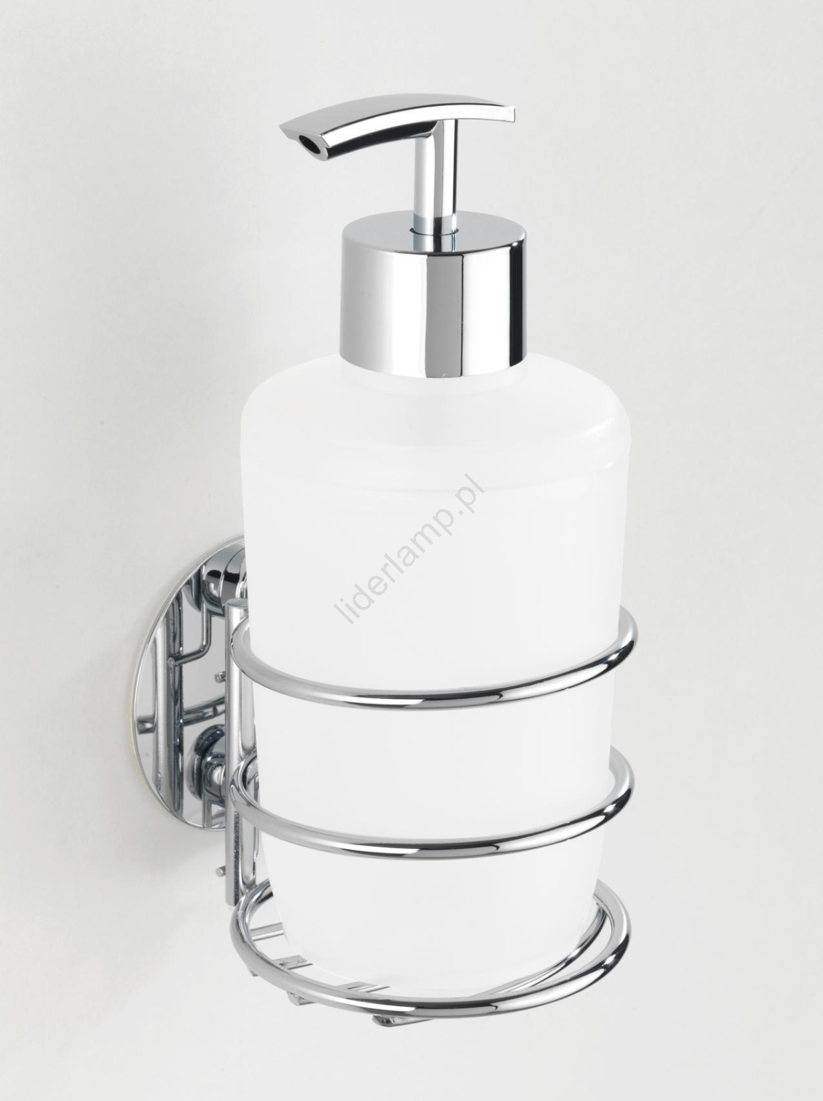 WENKO 18777100-Dozownik mydła TURBO-LOC, okrągły, stalowy, 7,5x16,5 cm, błyszczący chrom/biały