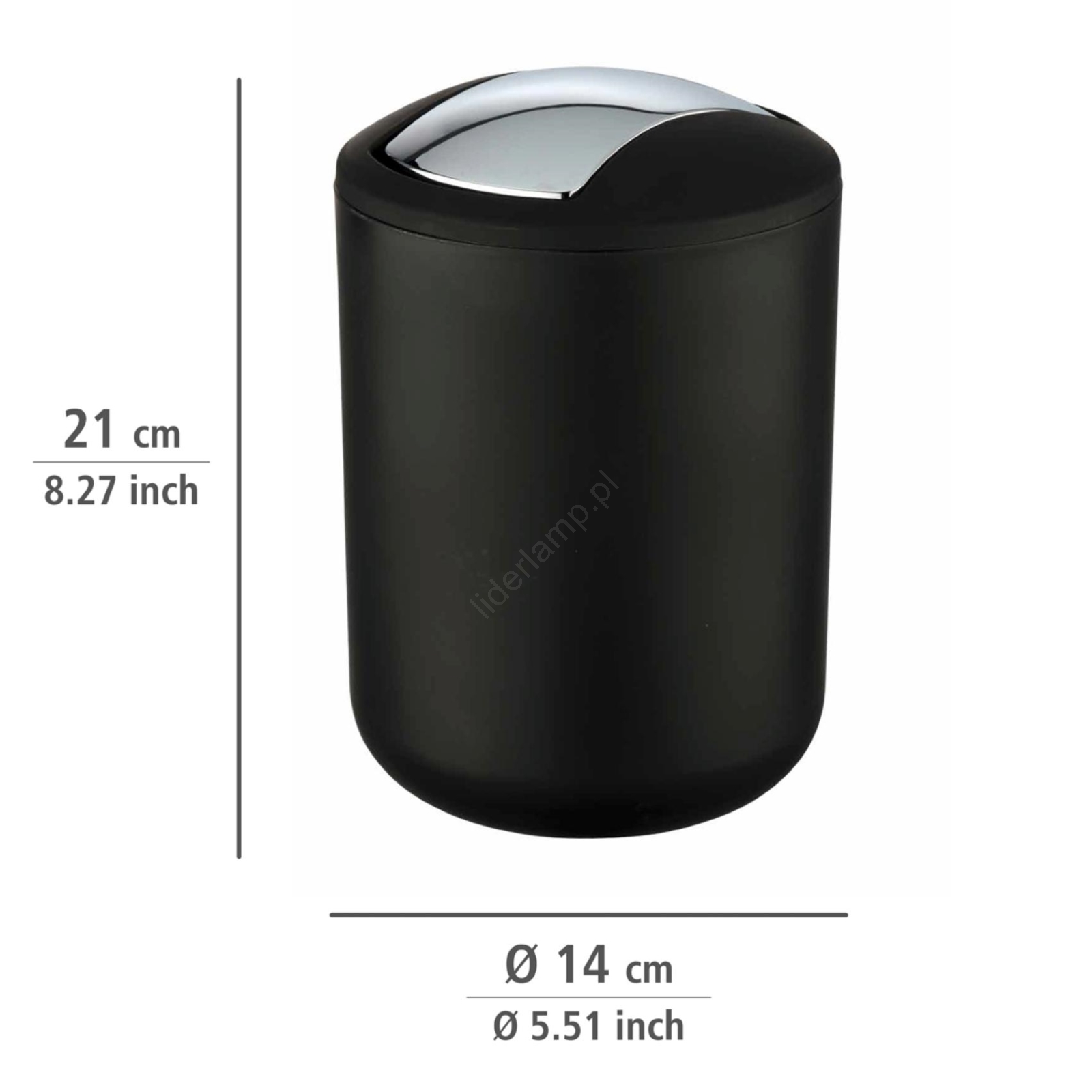 WENKO 21211100 - Kosz na śmieci BRASIL 14x21 cm czarny/błyszczący chrom