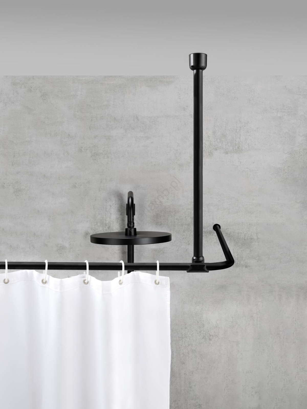 • Uniwersalny uchwyt sufitowy do drążków prysznicowych, idealny także do wersji teleskopowych.