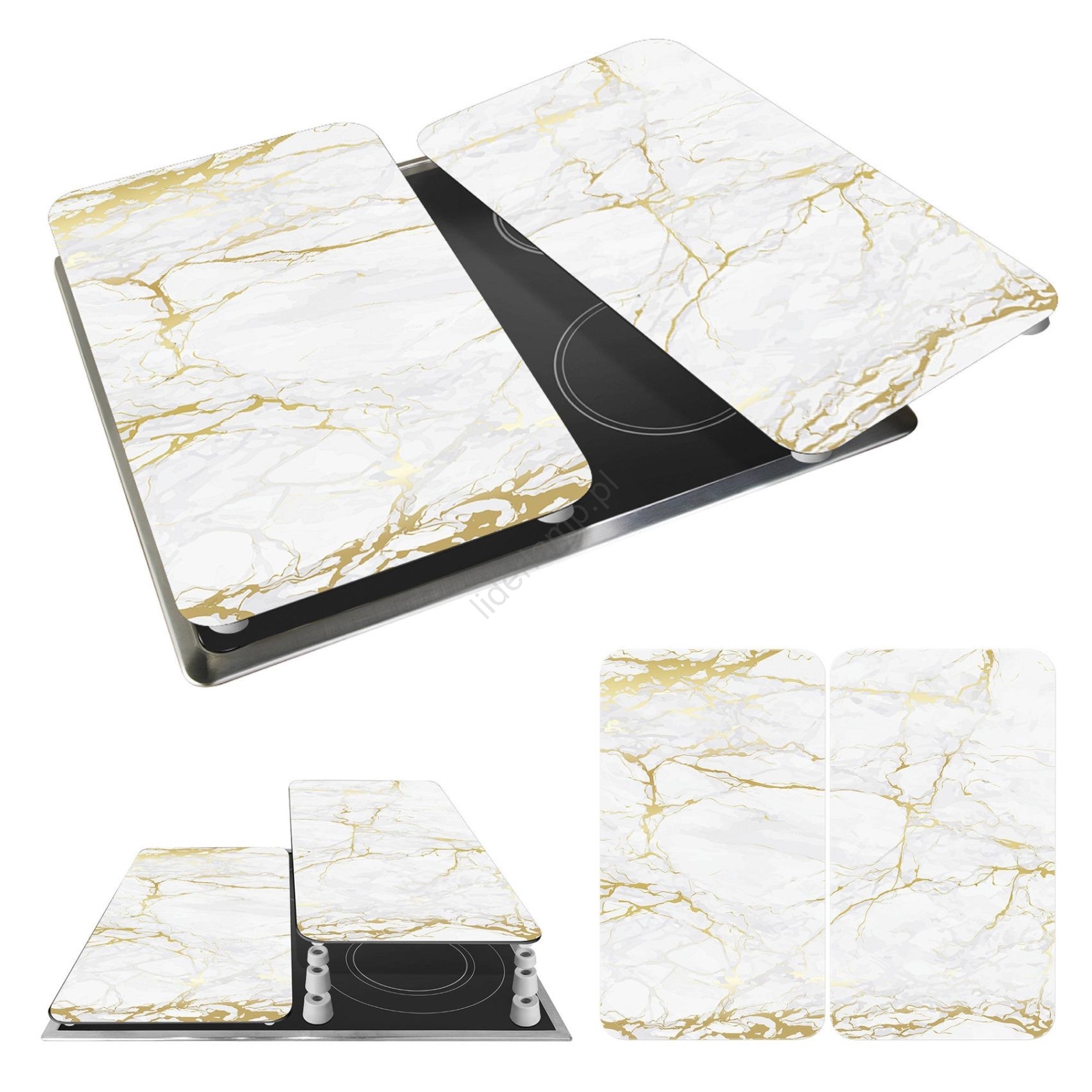 • Elegancki zestaw 2 pokryw na kuchenkę z marmurowym motywem w biało-złotej kolorystyce.