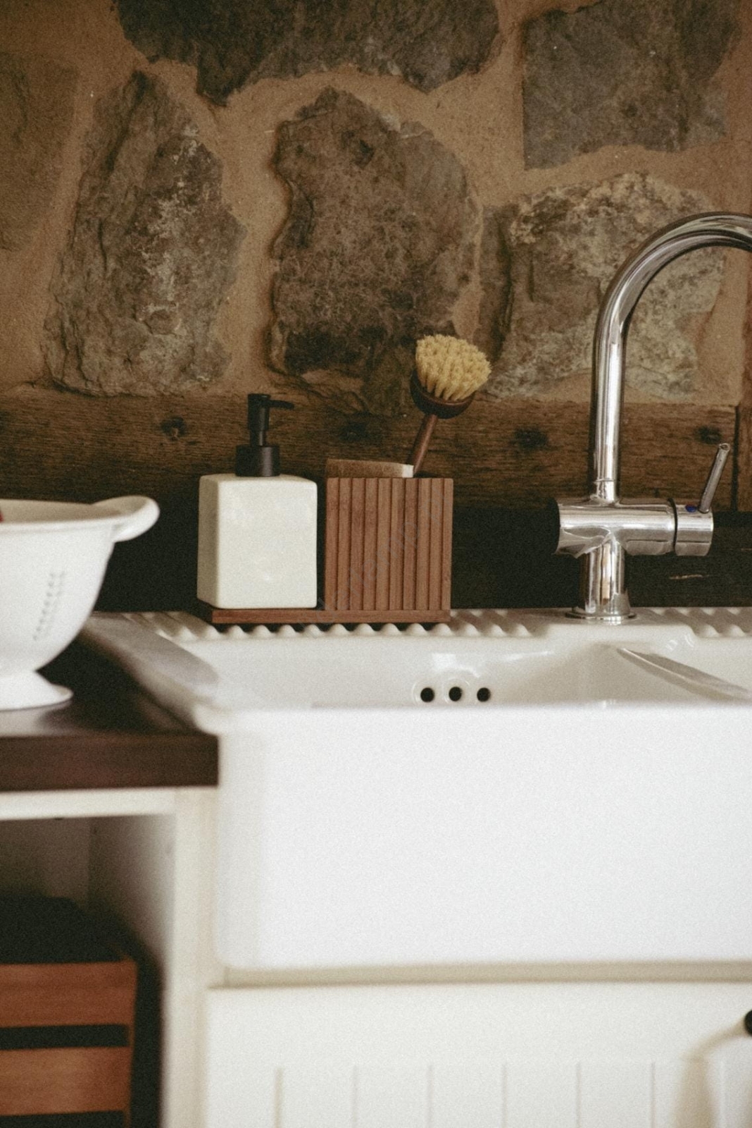 • Stojak oferuje wystarczająco miejsca na gąbki i szczotki do naczyń.