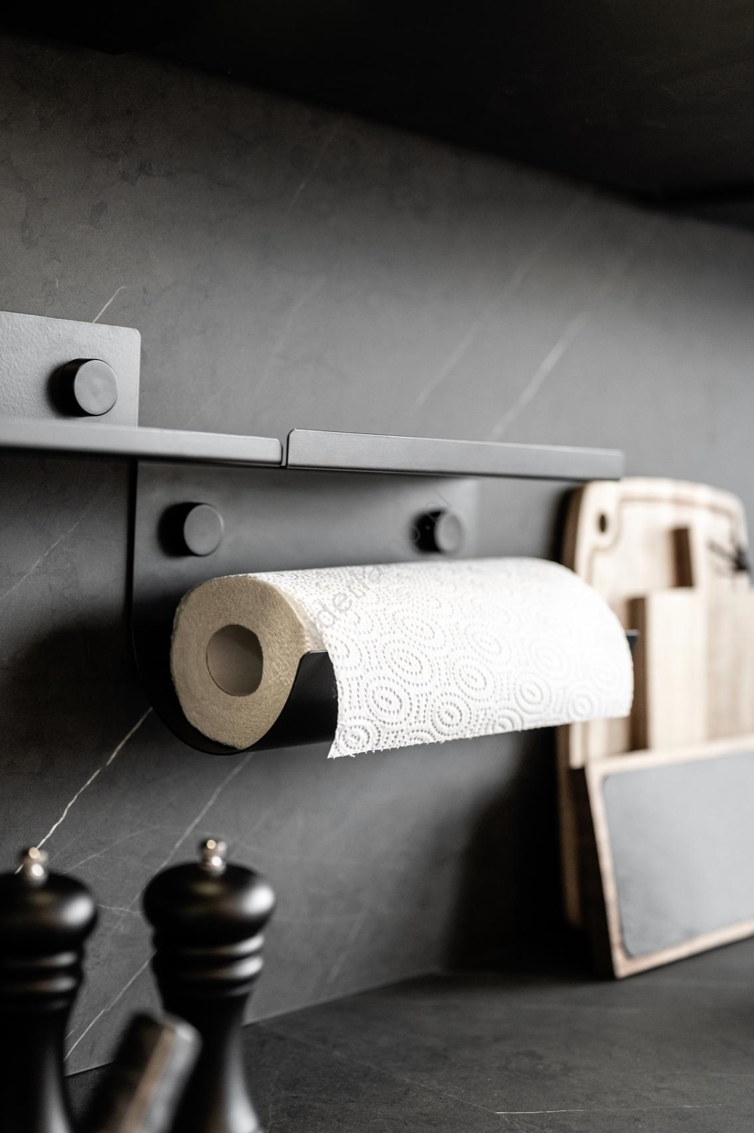 • Elegancki uchwyt na ręczniki kuchenne z serii WENKO Jet o nowoczesnym, czarnym wykończeniu.