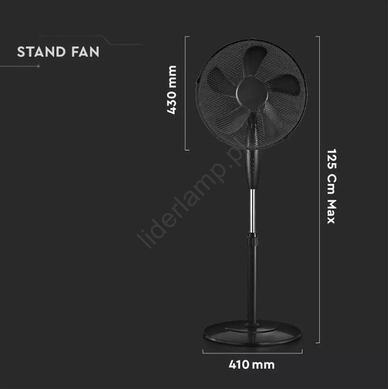 • Maksymalna wysokość wentylatora: 1,25 metra.