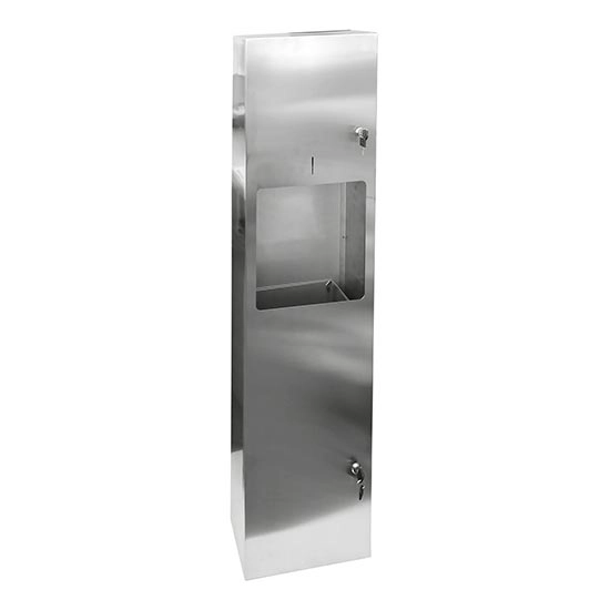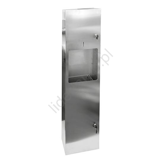 • Wolnostojący dozownik na ręczniki papierowe z wbudowanym koszem na śmieci.