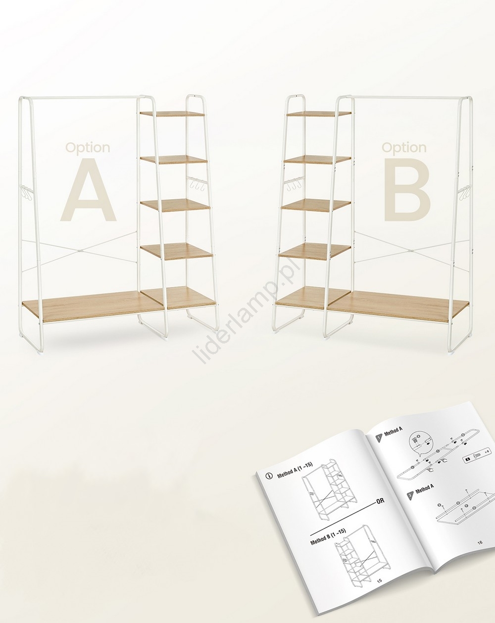 • Powieś kurtki, koszule i spodnie na górnym drążku na całej długości, na 6 półkach przechowaj torebki, buty, pudełka,  kapelusze, szaliki, parasole i inne niezbędne przedmioty.