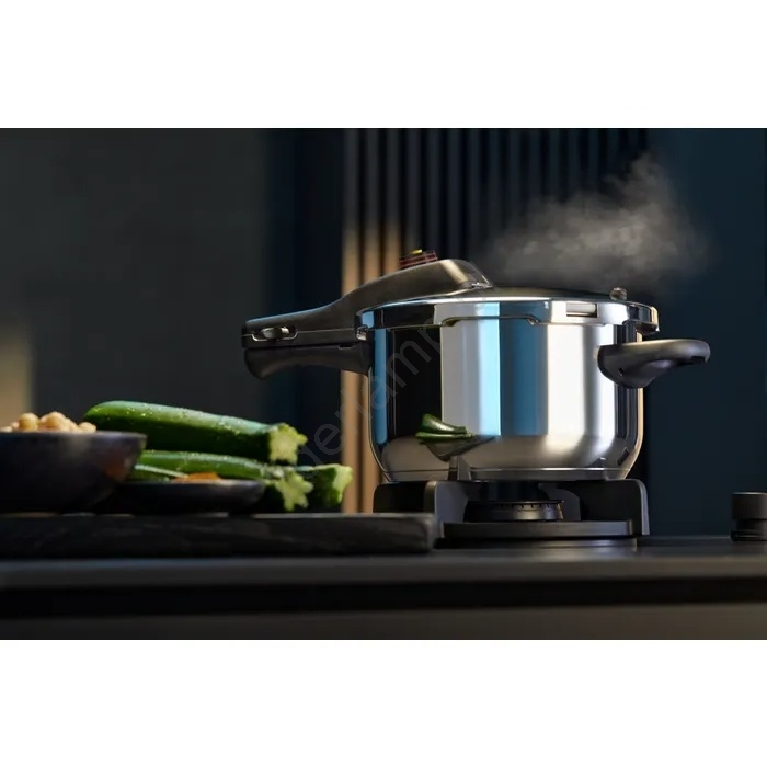 • Blokujący mechanizm bezpieczeństwa oraz automatyczne odprowadzanie pary – większe bezpieczeństwo podczas użytkowania.
