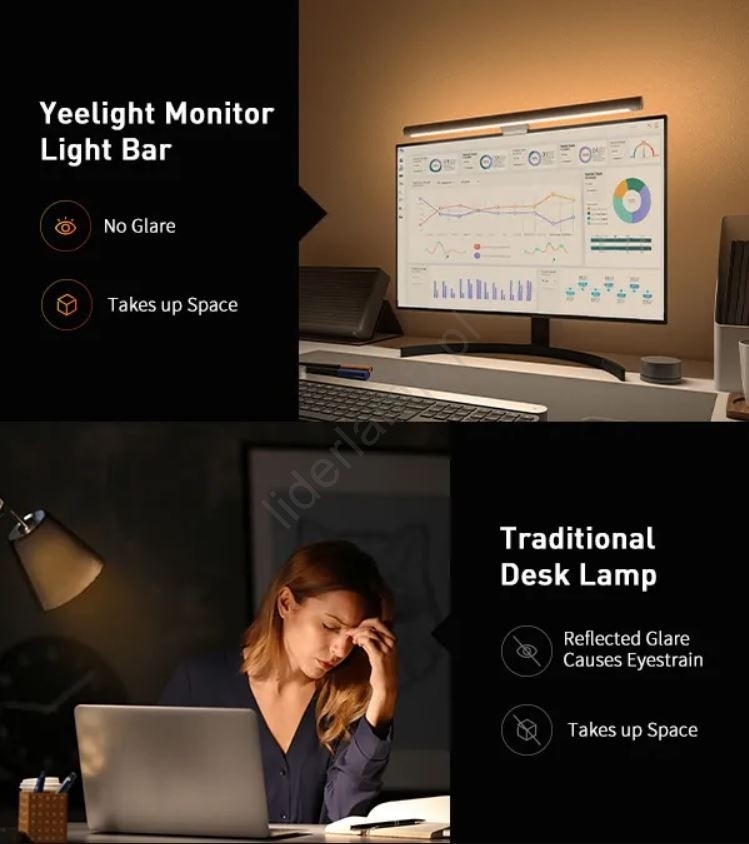 • Oświetlenie bezpiecznie obsługuje zarówno płaskie, jak i zakrzywione ekrany.