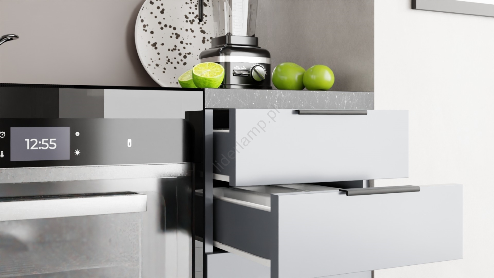 • Ułożenie szafek jest modułowe, kuchnię możesz dostosować do własnych potrzeb.