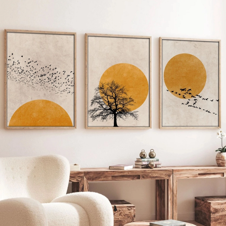 ReviewsWidget_ReviewsAboutUs Zestaw 3 obrazów w ramce 50x70 cm beżowy/pomarańczowy | Liderlamp.pl