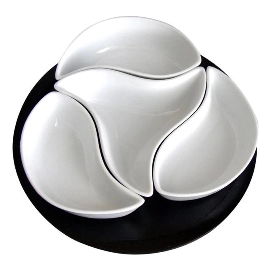 Zestaw 4 misek z tacą TORO — ceramika/drewno
