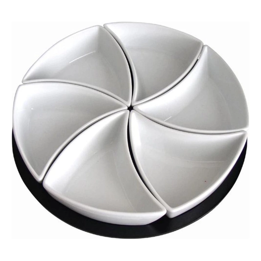 Zestaw 6 misek z podstawką TORO — ceramika i drewno