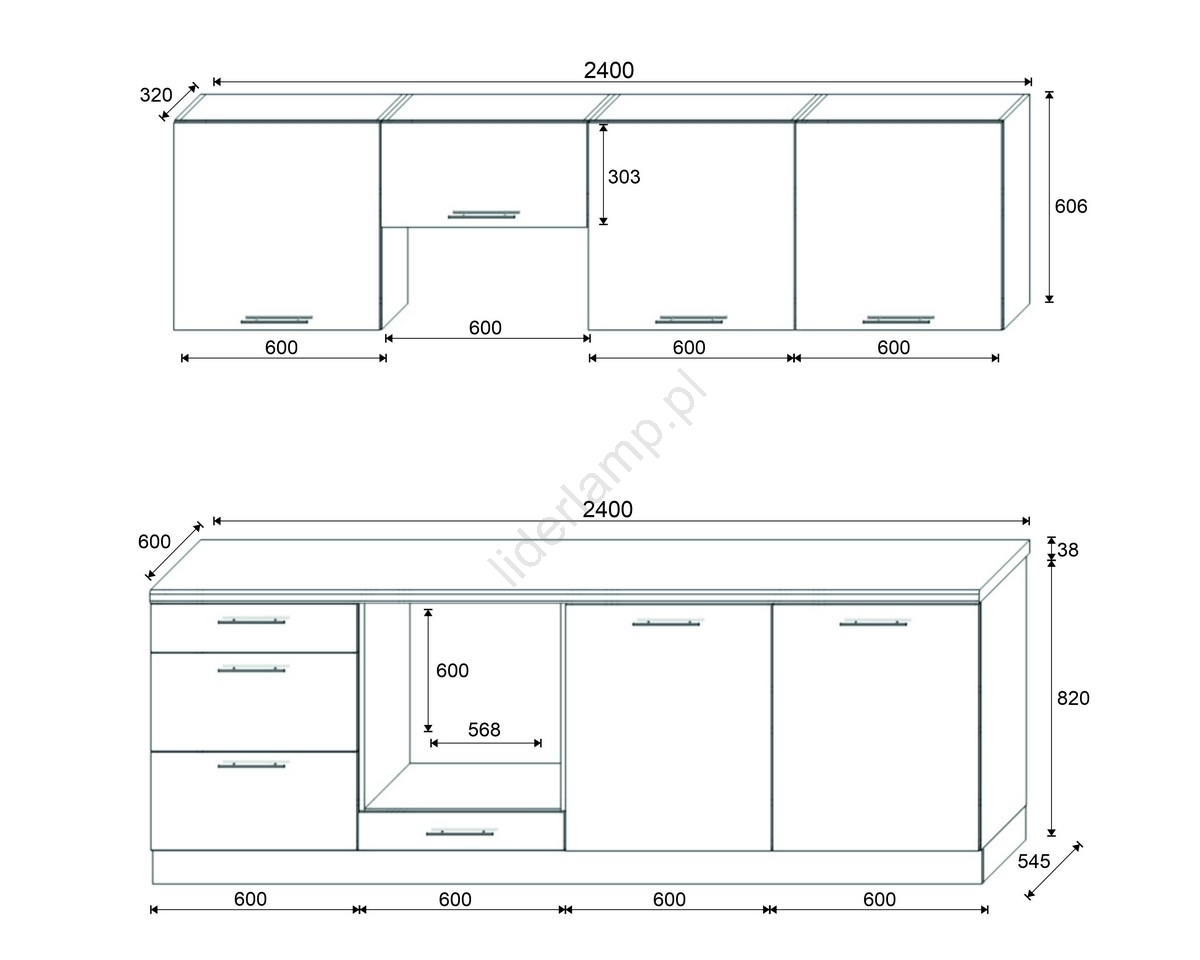 • Układ szafek jest modułowy, kuchnię możesz dostosować do własnych potrzeb.