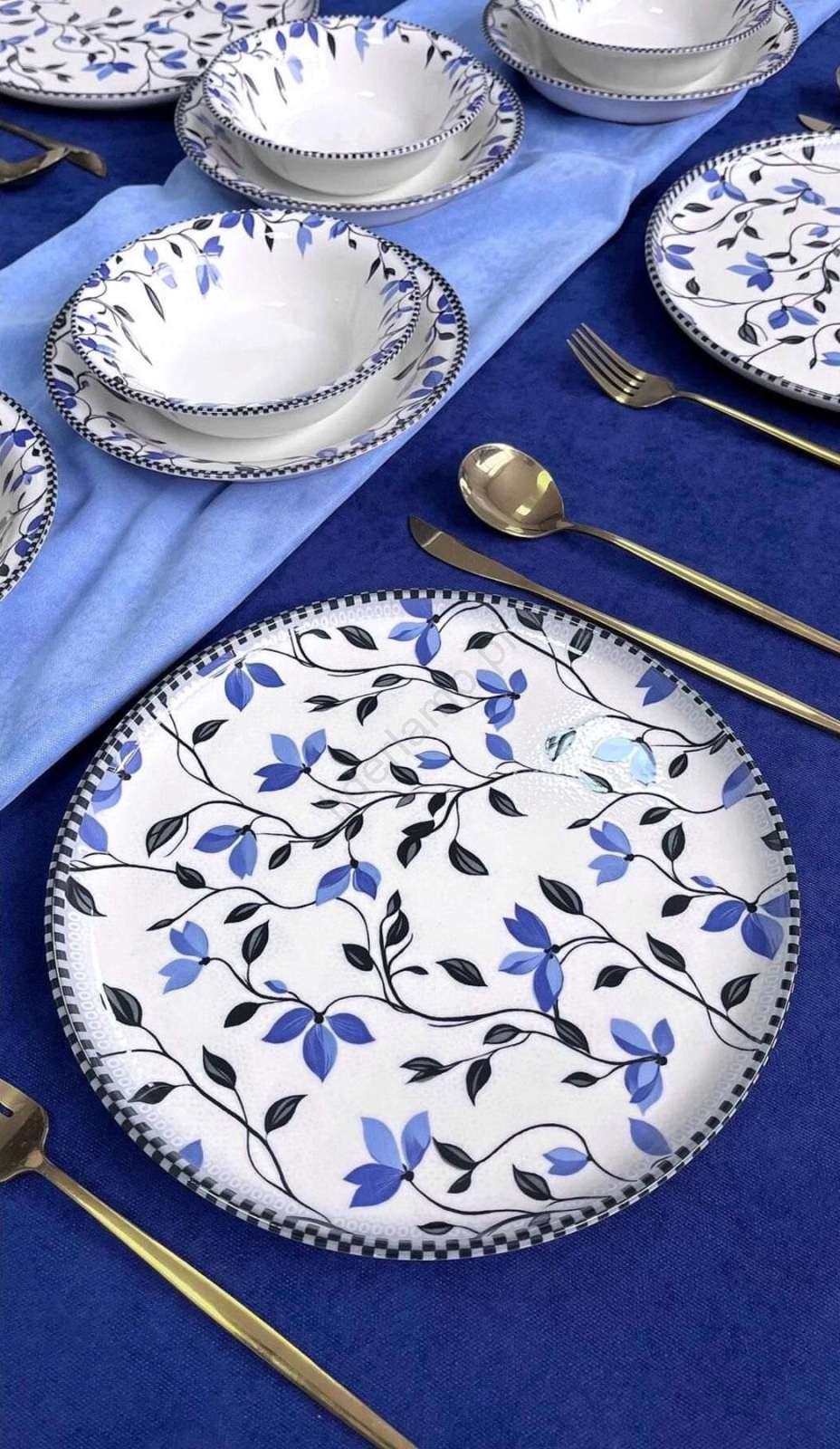 Zestaw obiadowy 18 szt. niebieska/biała/ceramika