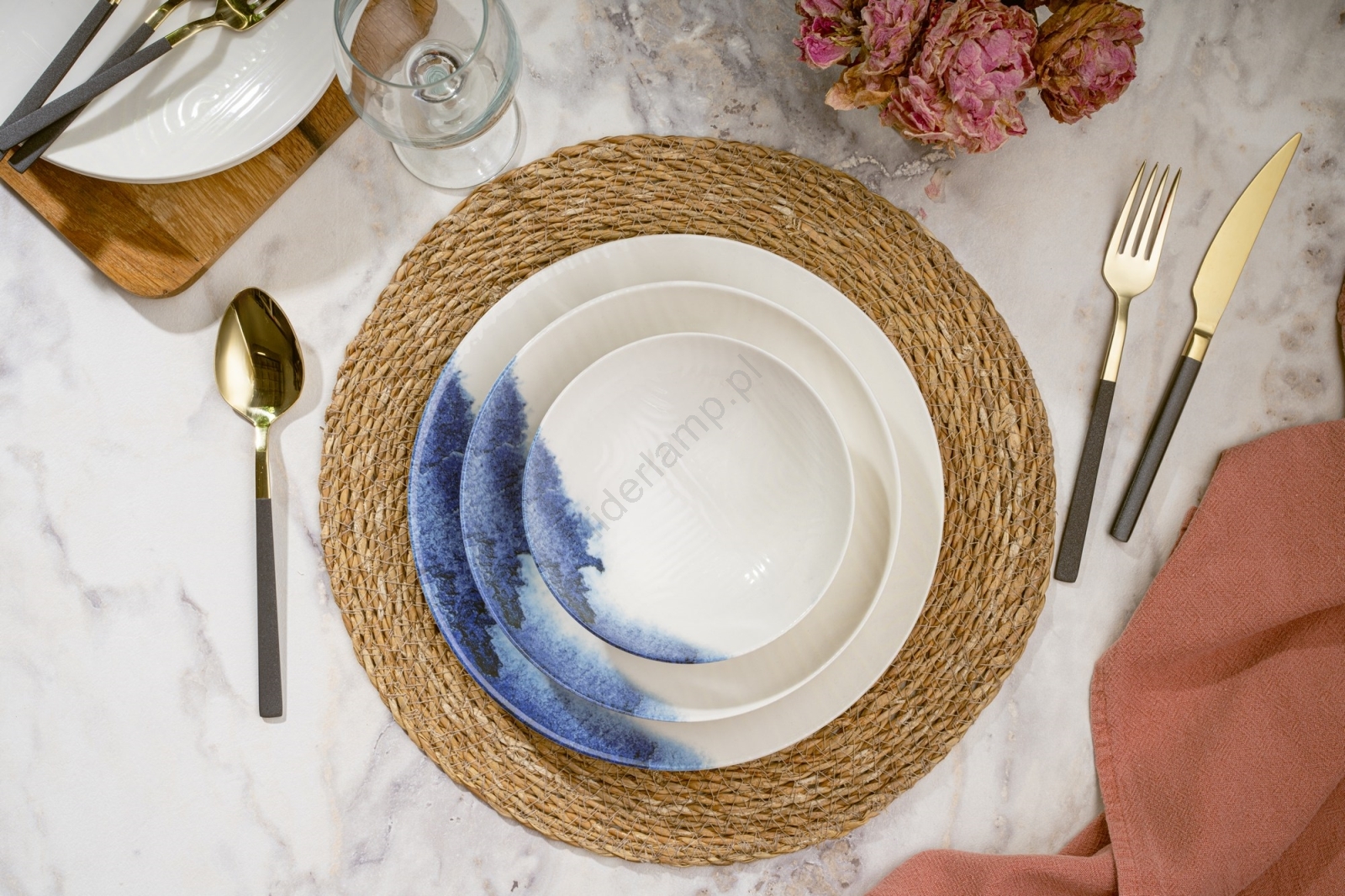 ReviewsWidget_ReviewsAboutUs Zestaw obiadowy 24 szt. kremowy/niebieski/porcelana | Liderlamp.pl