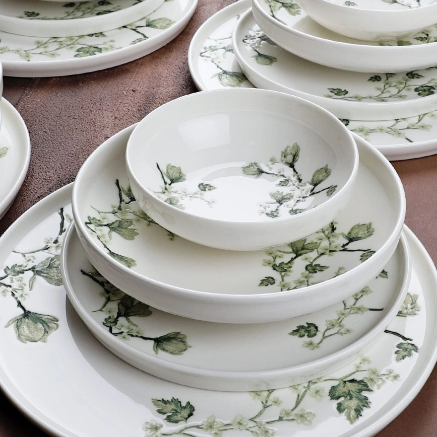 ReviewsWidget_ReviewsAboutUs Zestaw obiadowy 24 części biały/zielony/porcelana | Liderlamp.pl