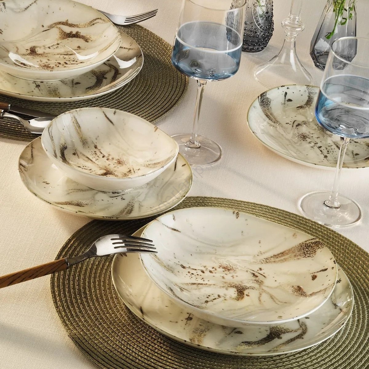 ReviewsWidget_ReviewsAboutUs Zestaw obiadowy 24-częściowy, brązowy/porcelana | Liderlamp.pl