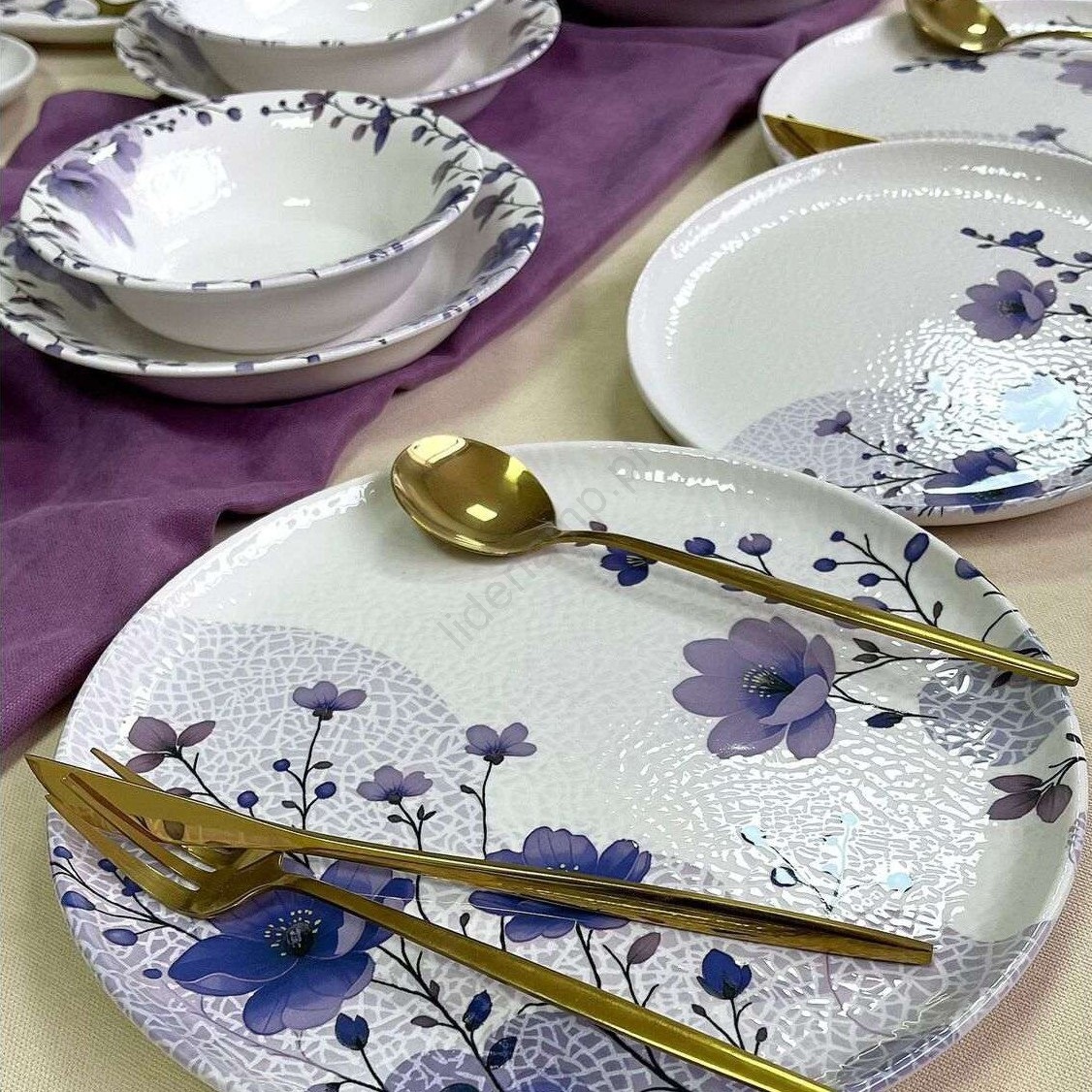ReviewsWidget_ReviewsAboutUs Zestaw obiadowy 24 szt. biały/fioletowy/ceramika | Liderlamp.pl