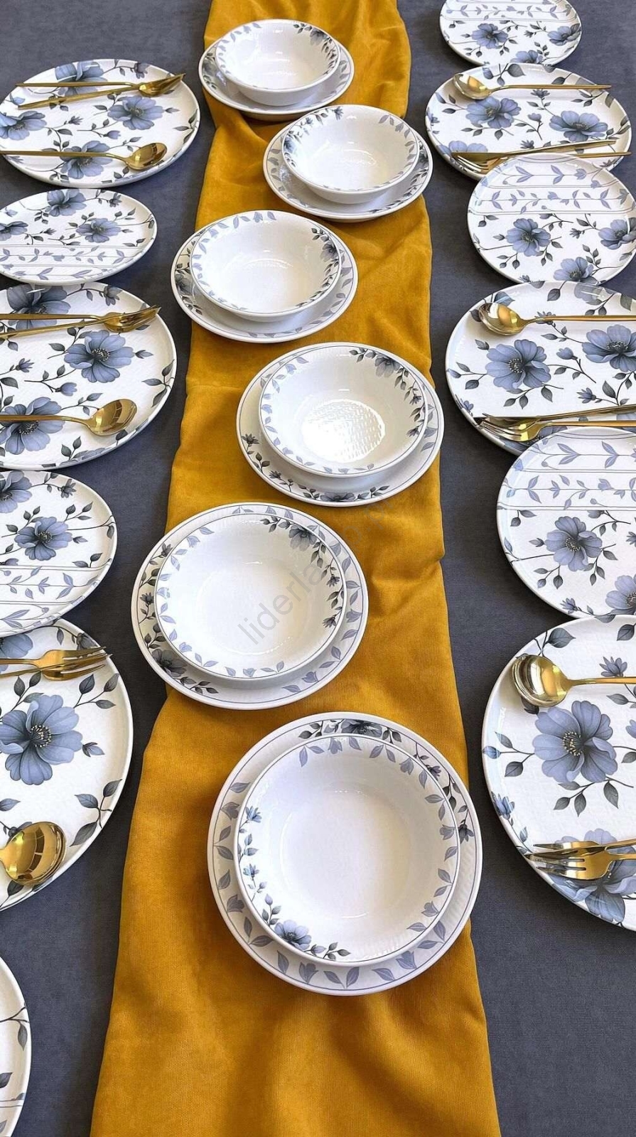 ReviewsWidget_ReviewsAboutUs Zestaw obiadowy 24 szt. biały/niebieski/ceramika | Liderlamp.pl