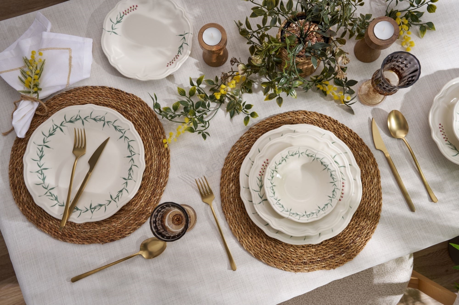 ReviewsWidget_ReviewsAboutUs Zestaw obiadowy 24 szt. biały/zielony/porcelana | Liderlamp.pl