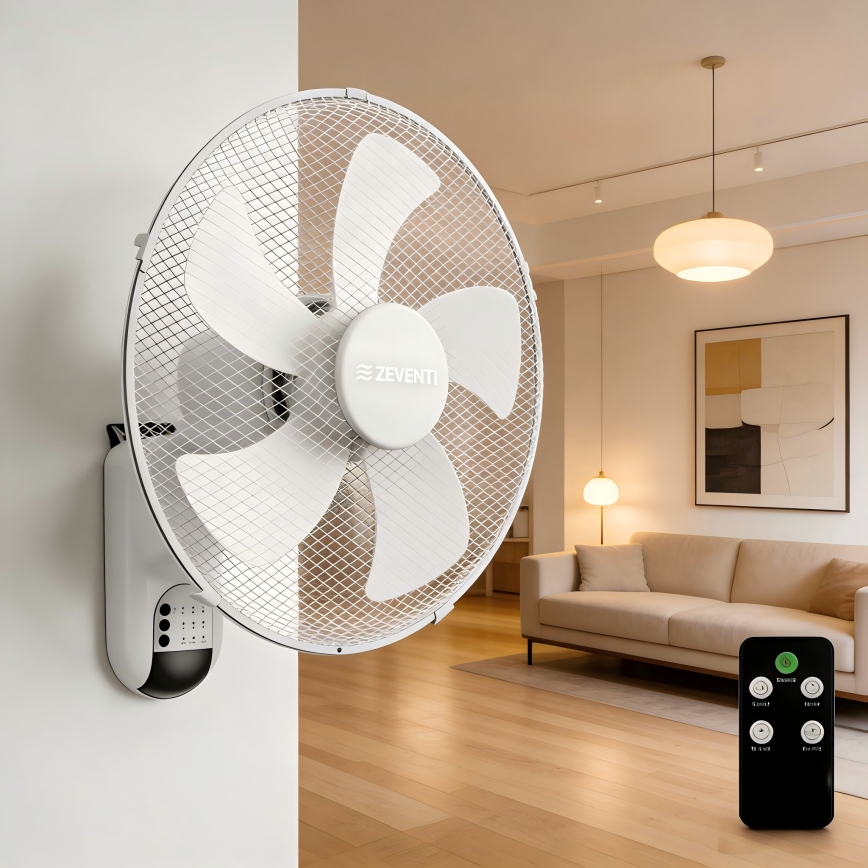 ZEVENTI - Wentylator ścienny FANNY 45W/230V śr. 41 cm biały + pilot zdalnego sterowania