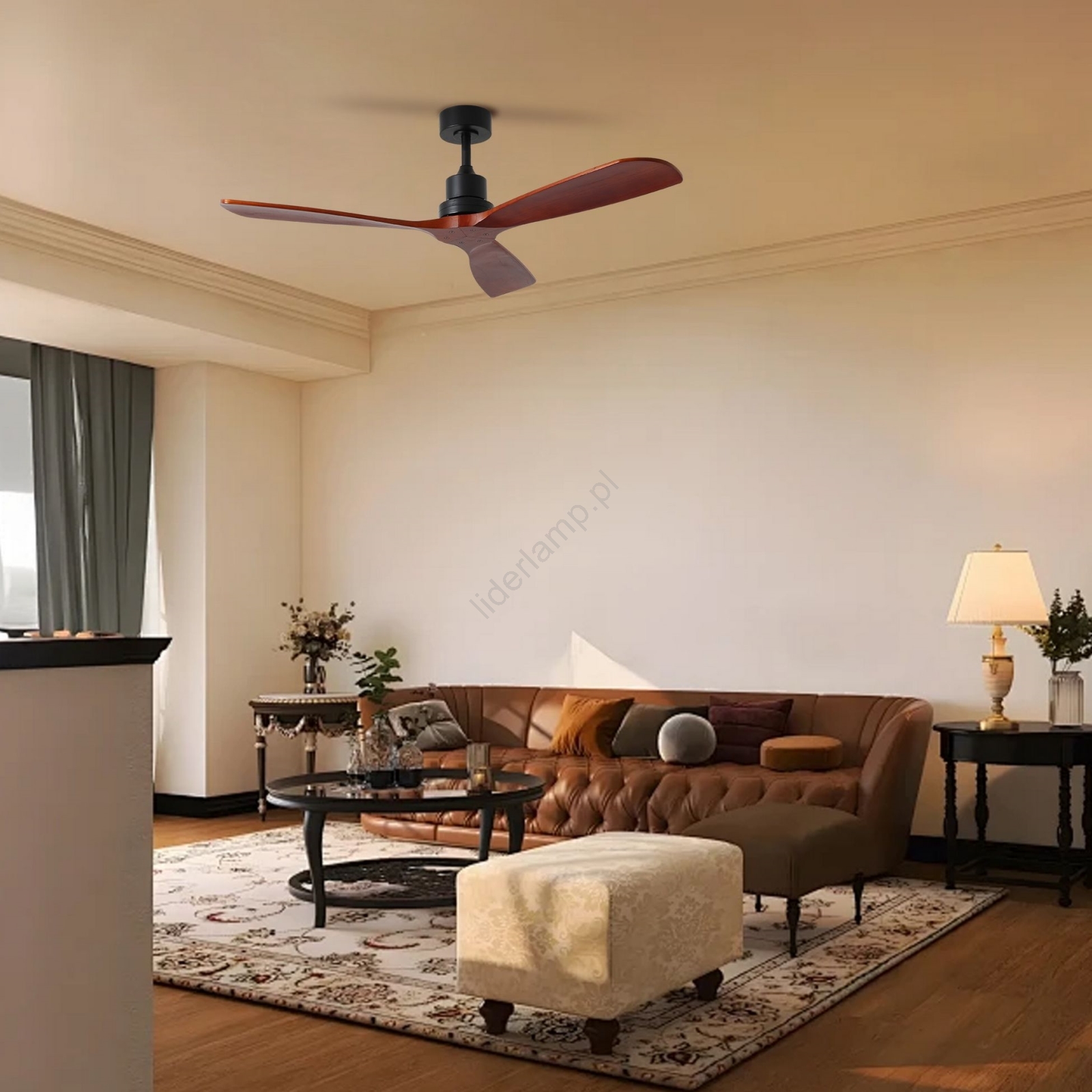 ZEVENTI - Wentylator sufitowy LIONI Wi-Fi Tuya czarny/dąb + pilot zdalnego sterowania