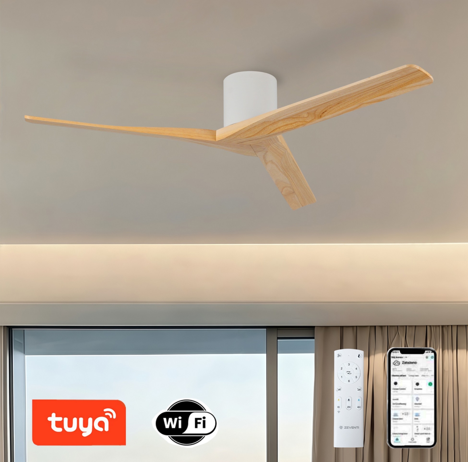 ZEVENTI - Wentylator sufitowy VELLON Wi-Fi Tuya biały/pawlonia + pilot zdalnego sterowania