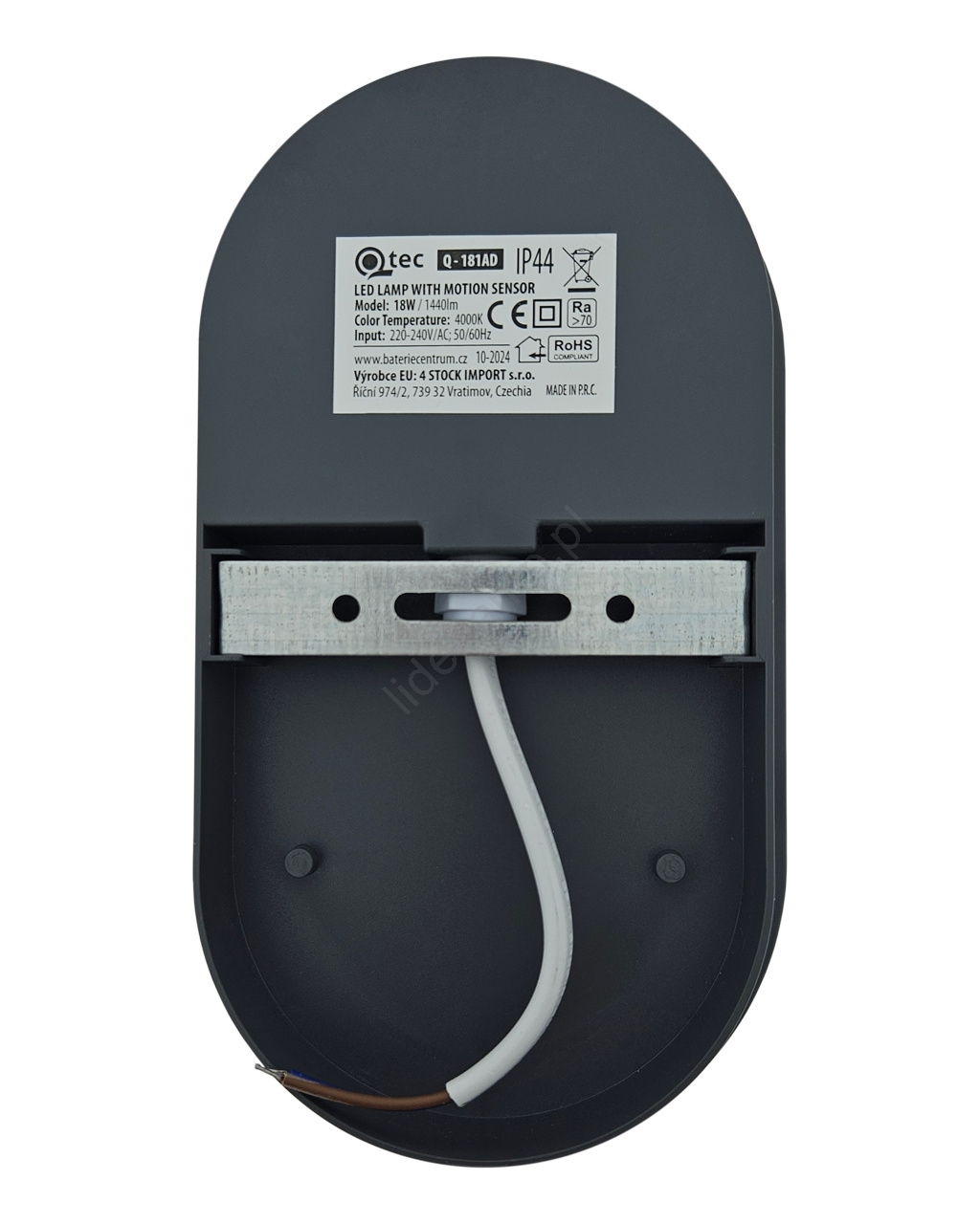 • Zewnętrzny kinkiet LED z czujnikiem ruchu, 18W, 230V, IP44, antracyt